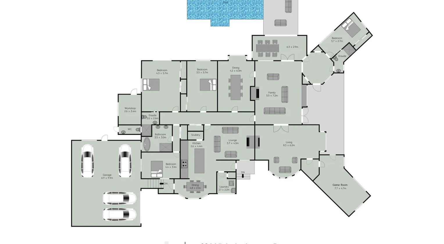 $ 2,200/week, min. 4 bedrooms