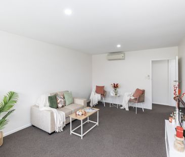 Sunny lounge and kitchen with room for a dining table. Go...