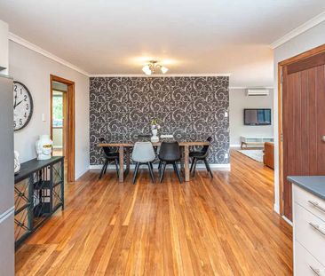 This tidy three-bedroom home features separate living, di...